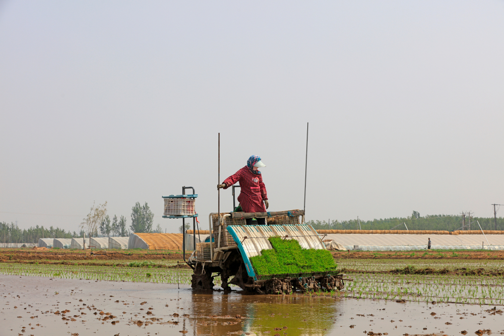 A rice transplanter is a specialized transplanter fitted to transplant rice seedlings onto paddy field. Machine transplanting using rice transplanters requires considerably less time and labor than manual transplanting. It increases the approximate area that a person can plant from 700 to 10,000 square metres per day